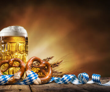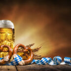 Oktoberfest beer with pretzel, wheat and hops