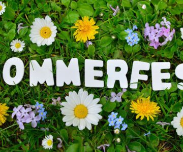 Sommerfest Text auf Blumen Wiese